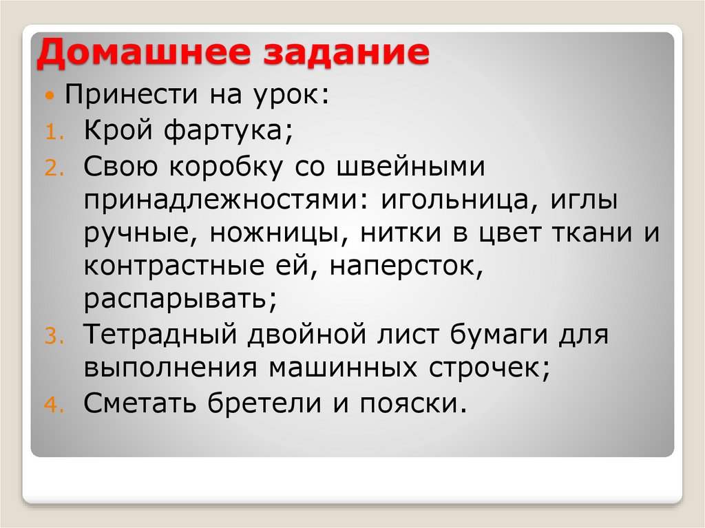 Домашнее заданиеПринести на урок: