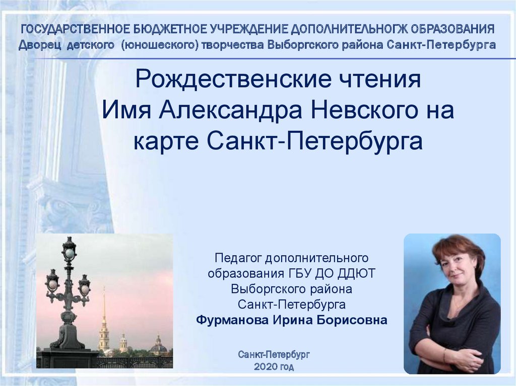Рождественские чтения Имя Александра Невского на карте Санкт-Петербурга