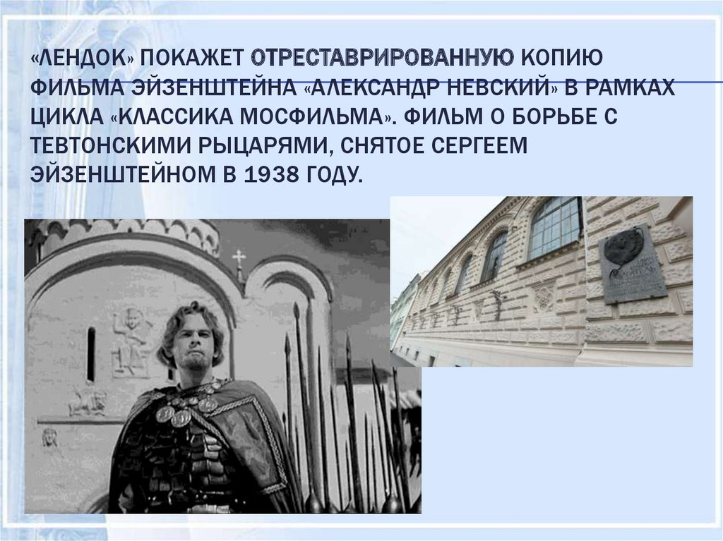 «ЛЕНДОК» ПОКАЖЕТ ОТРЕСТАВРИРОВАННУЮ КОПИЮФИЛЬМА ЭЙЗЕНШТЕЙНА «АЛЕКСАНДР НЕВСКИЙ» В РАМКАХ