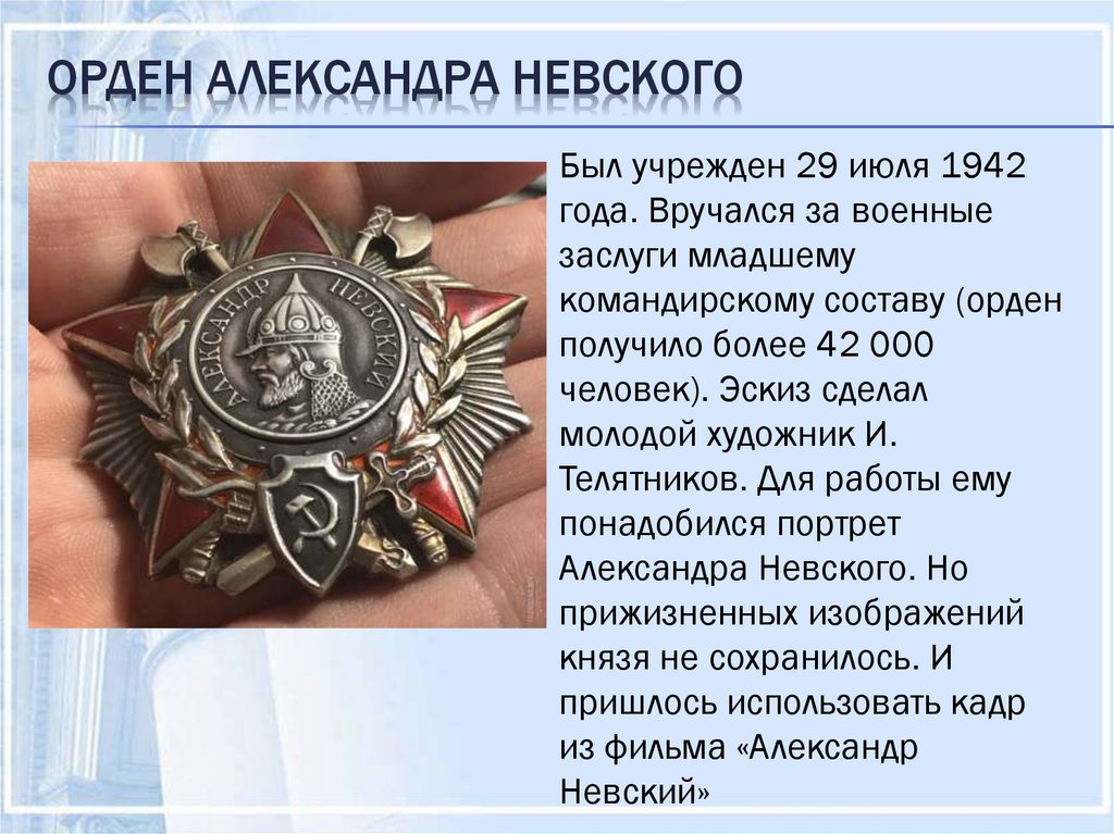 ОРДЕН АЛЕКСАНДРА НЕВСКОГОБыл учрежден 29 июля 1942