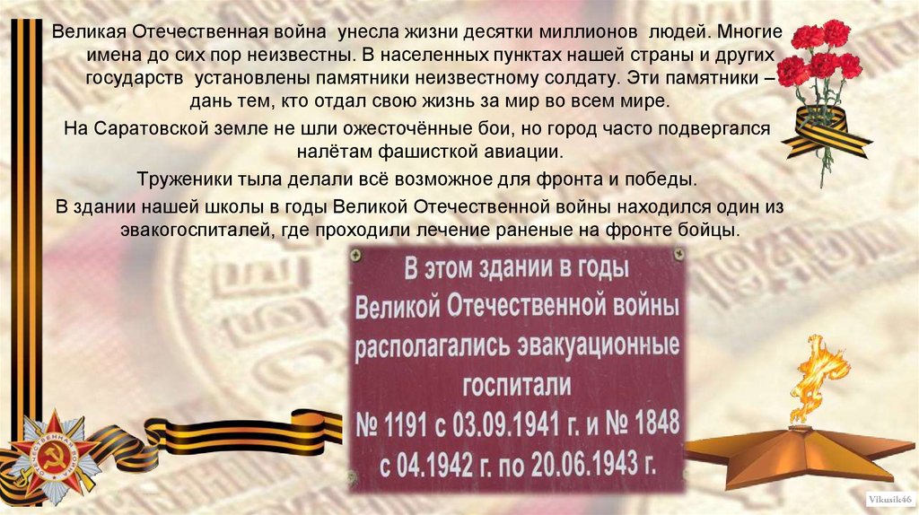 В здании нашей школы в годы Великой Отечественной войны находился один из