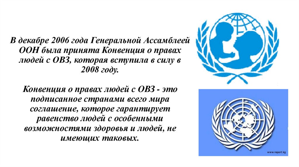 В декабре 2006 года Генеральной АссамблеейООН была принята Конвенция о правах