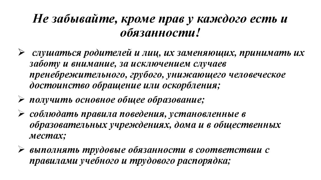 Не забывайте, кроме прав у каждого есть иобязанности!