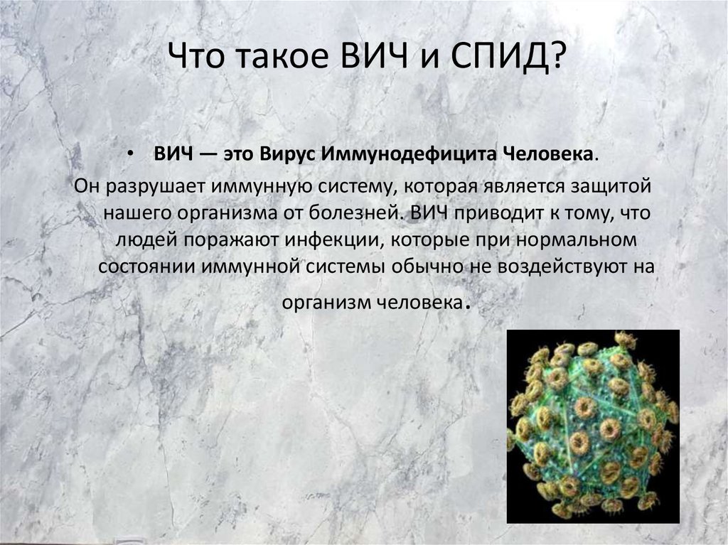 Что такое ВИЧ и СПИД?• ВИЧ — это Вирус Иммунодефицита Человека.