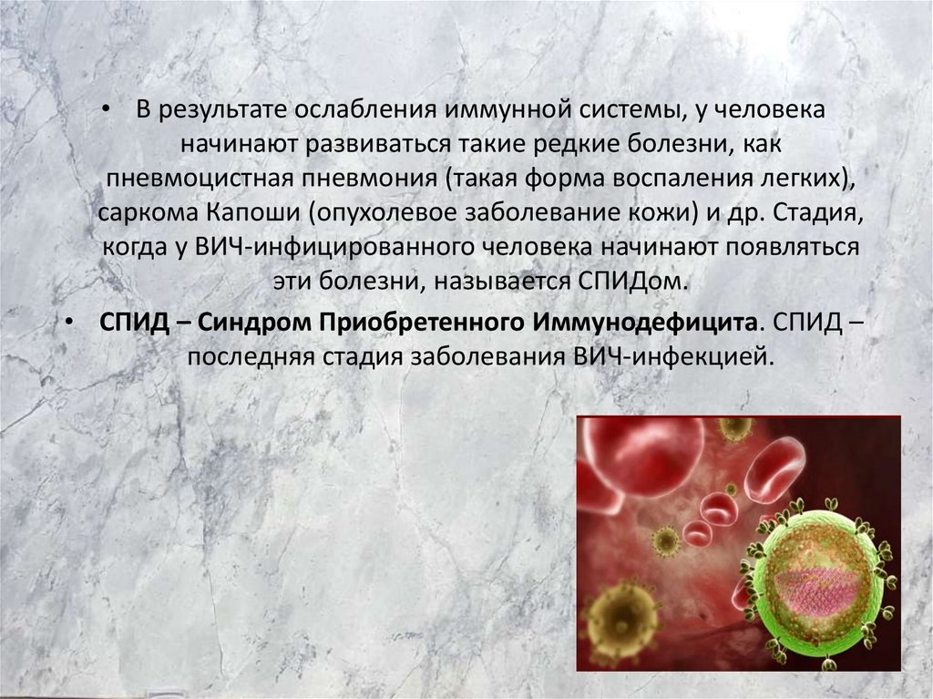 нашего организма от болезней. ВИЧ приводит к тому, что