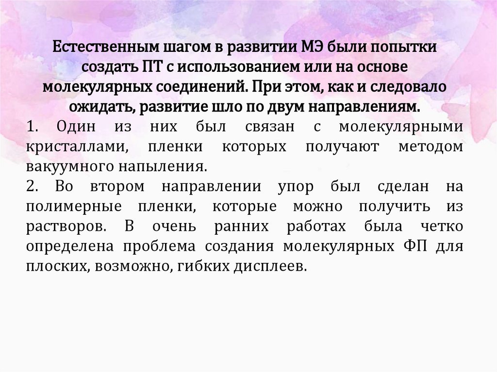 Естественным шагом в развитии MЭ были попыткисоздать ПT с использованием или на основе