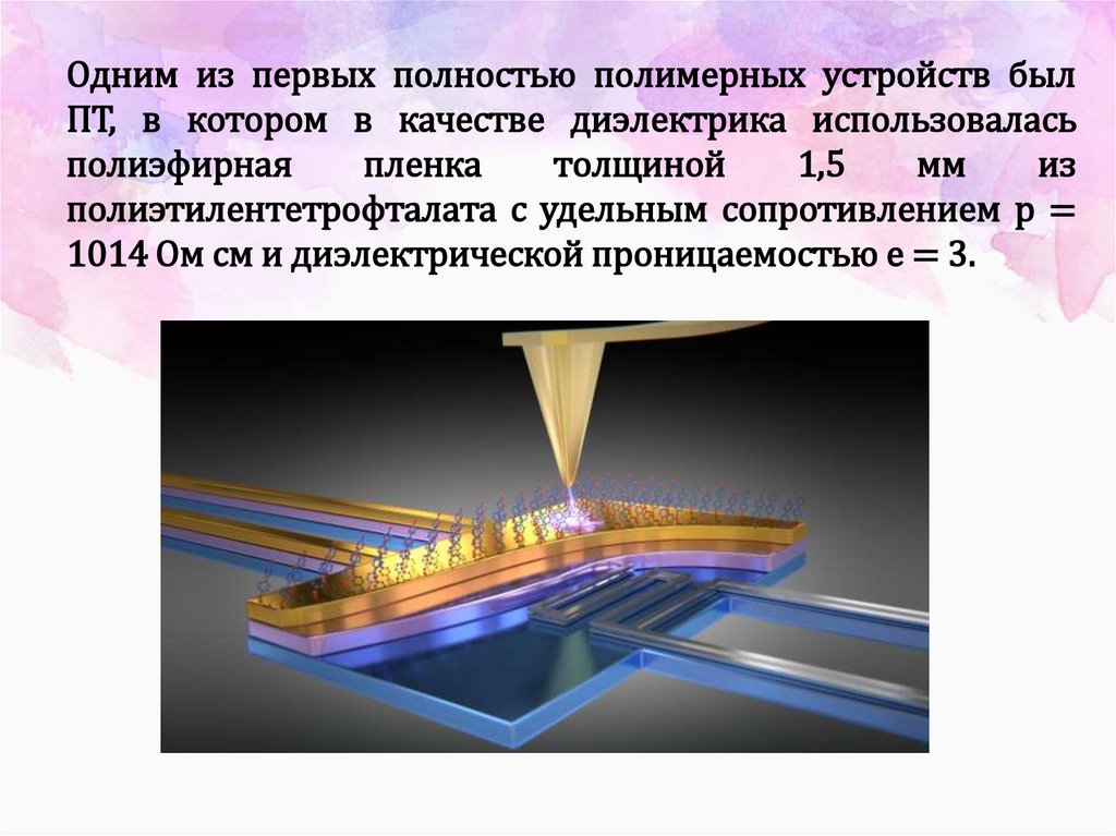Одним из первых полностью полимерных устройств былПТ, в котором в качестве диэлектрика использовалась