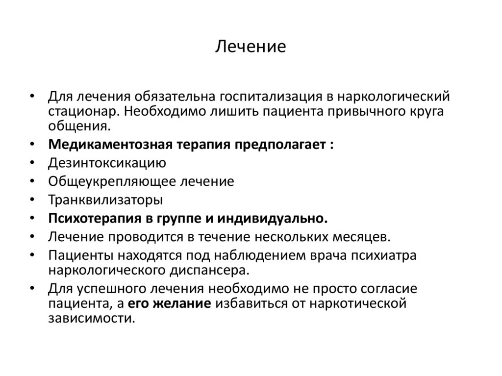 Лечение• Для лечения обязательна госпитализация в наркологический