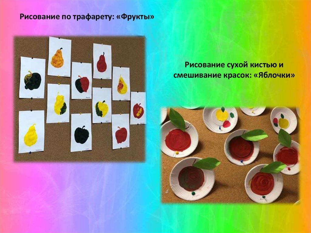 Рисование по трафарету: «Фрукты»Рисование сухой кистью и