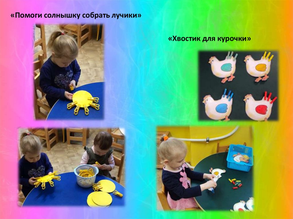 «Помоги солнышку собрать лучики»«Хвостик для курочки»
