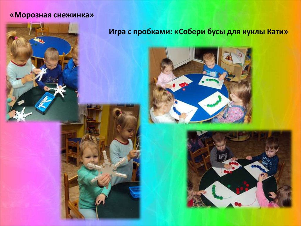 «Морозная снежинка»Игра с пробками: «Собери бусы для куклы Кати»