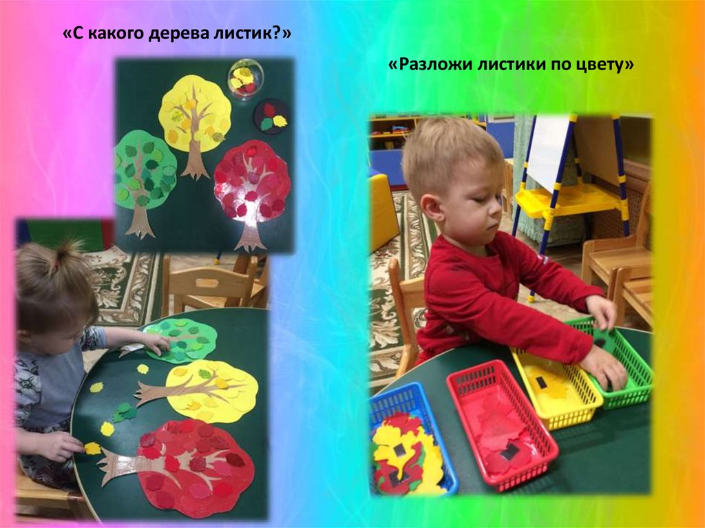«С какого дерева листик?»«Разложи листики по цвету»