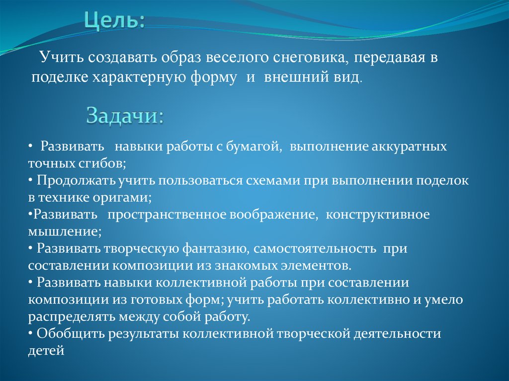 • Развивать навыки работы с бумагой, выполнение аккуратных