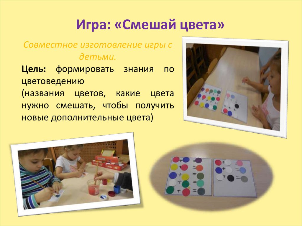 Игра: «Смешай цвета»Совместное изготовление игры с