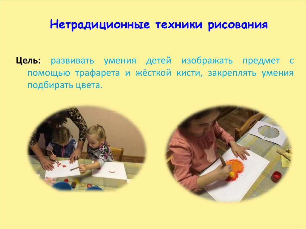 Нетрадиционные техники рисованияЦель: развивать умения детей изображать предмет с