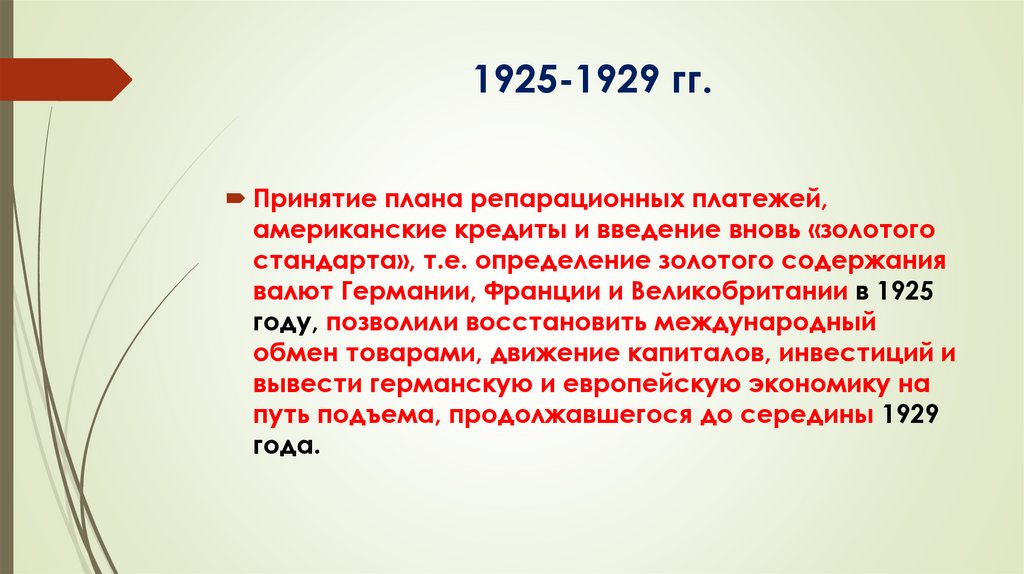 1925-1929 гг.Принятие плана репарационных платежей,