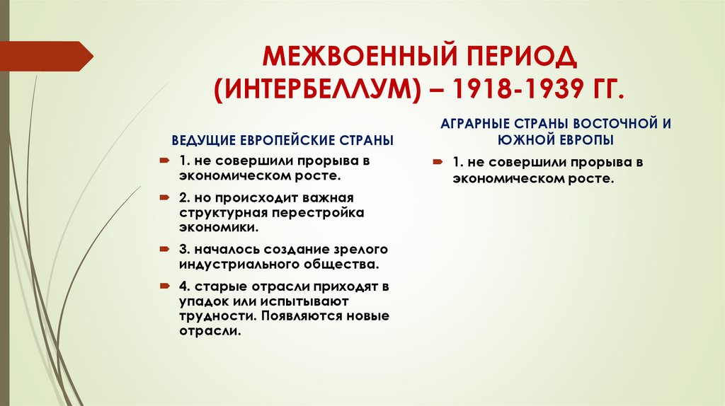 МЕЖВОЕННЫЙ ПЕРИОД(ИНТЕРБЕЛЛУМ) – 1918-1939 ГГ.