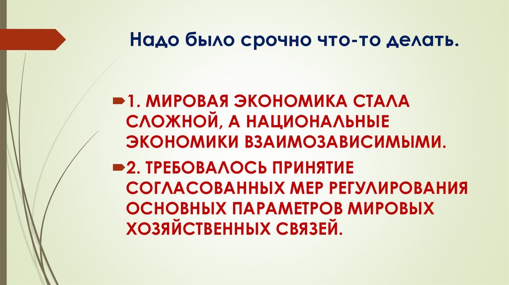 Надо было срочно что-то делать.1. МИРОВАЯ ЭКОНОМИКА СТАЛА