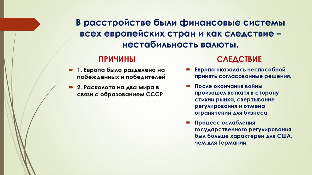 В расстройстве были финансовые системывсех европейских стран и как следствие –