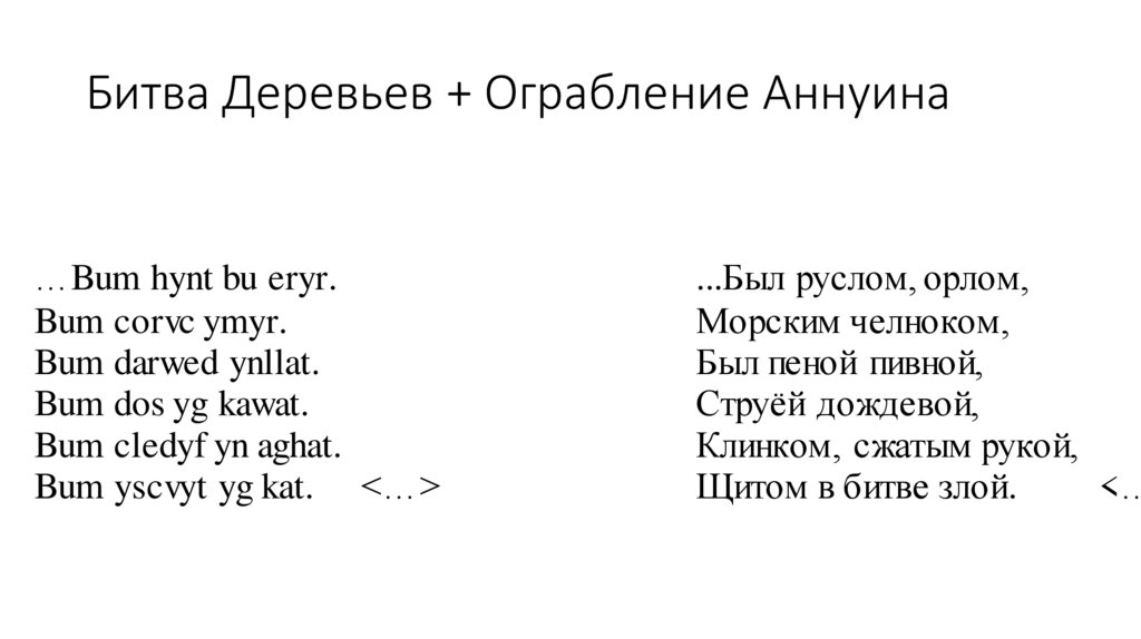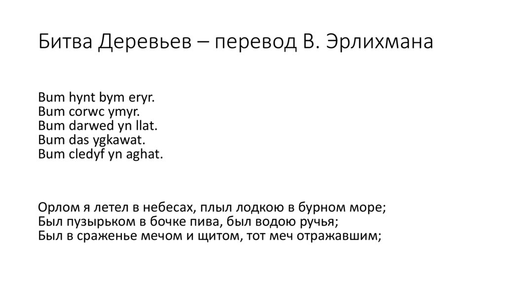 Битва Деревьев – перевод В. ЭрлихманаBum hynt bym eryr.