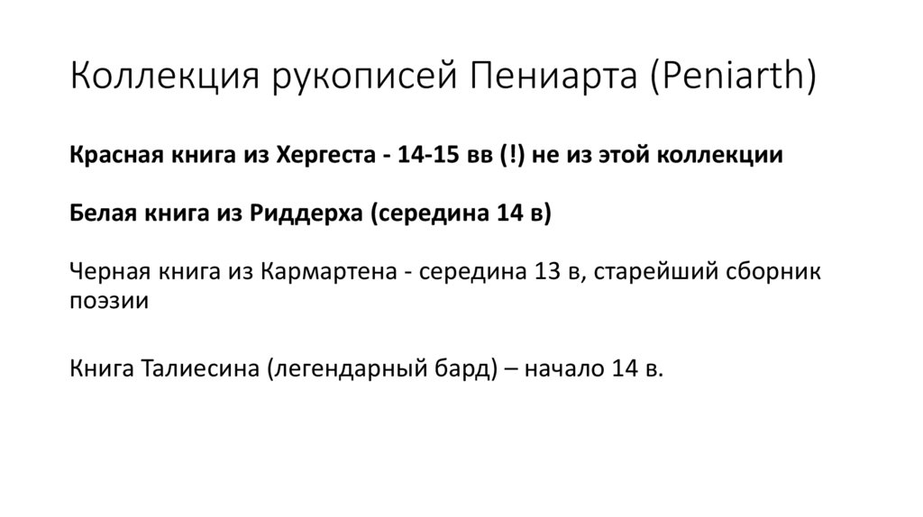 Коллекция рукописей Пениарта (Peniarth)Красная книга из Хергеста - 14-15 вв (!) не из этой коллекции
