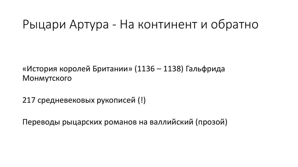 Рыцари Артура - На континент и обратно«История королей Британии» (1136 – 1138) Гальфрида