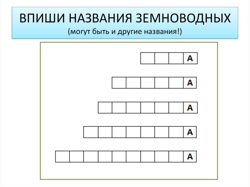 ВПИШИ НАЗВАНИЯ ЗЕМНОВОДНЫХ(могут быть и другие названия!)
