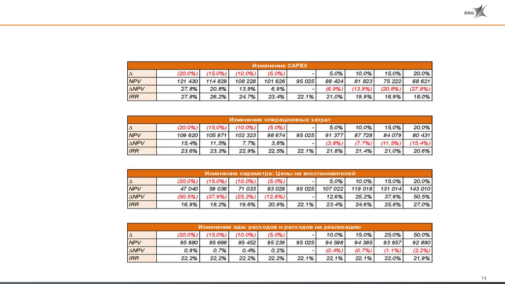 АО «Шубарколь комир» | Количественный анализ влияния рисков на стоимость проекта – Анализ чувствительности$ тыс.