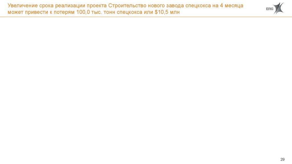 Увеличение срока реализации проекта Строительство нового завода спецкокса на 4 месяцаможет привести к потерям 100,0 тыс. тонн спецкокса или $10,5 млн
