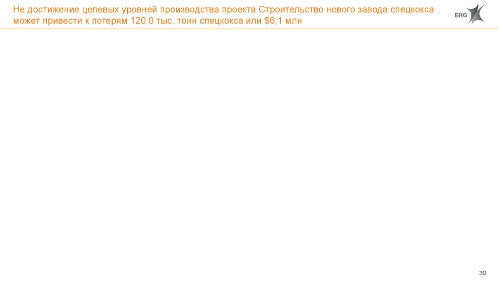 Не достижение целевых уровней производства проекта Строительство нового завода спецкоксаможет привести к потерям 120,0 тыс. тонн спецкокса или $6,1 млн