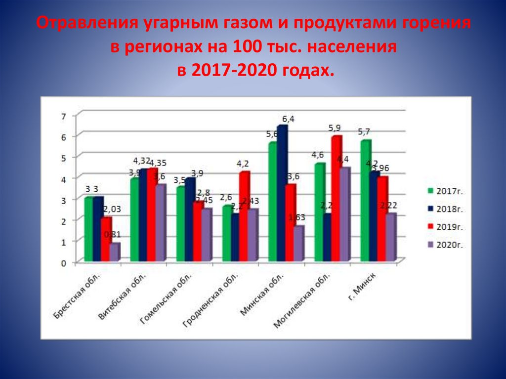 Отравления угарным газом и продуктами горенияв регионах на 100 тыс. населения