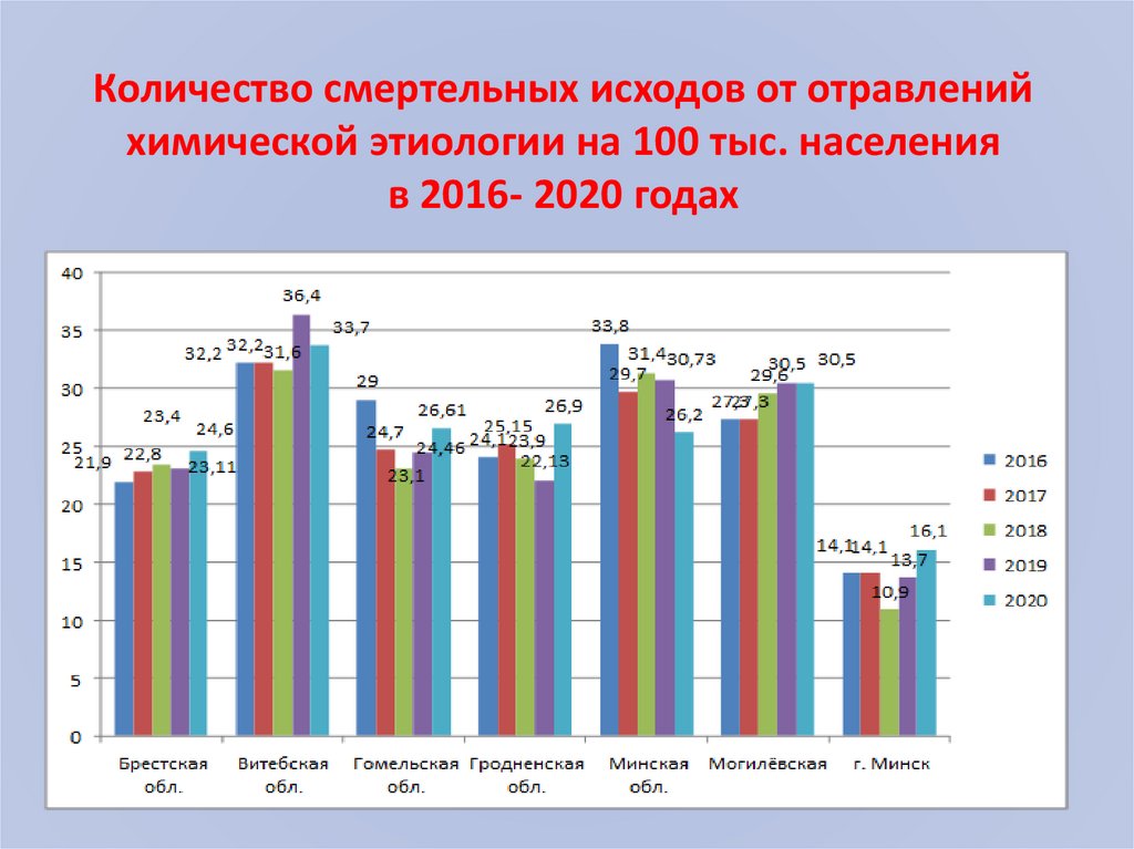 Количество смертельных исходов от отравленийхимической этиологии на 100 тыс. населения