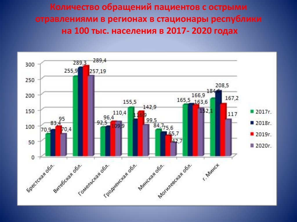 Количество обращений пациентов с острымиотравлениями в регионах в стационары республики