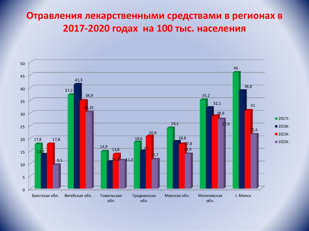 Отравления лекарственными средствами в регионах в2017-2020 годах на 100 тыс. населения