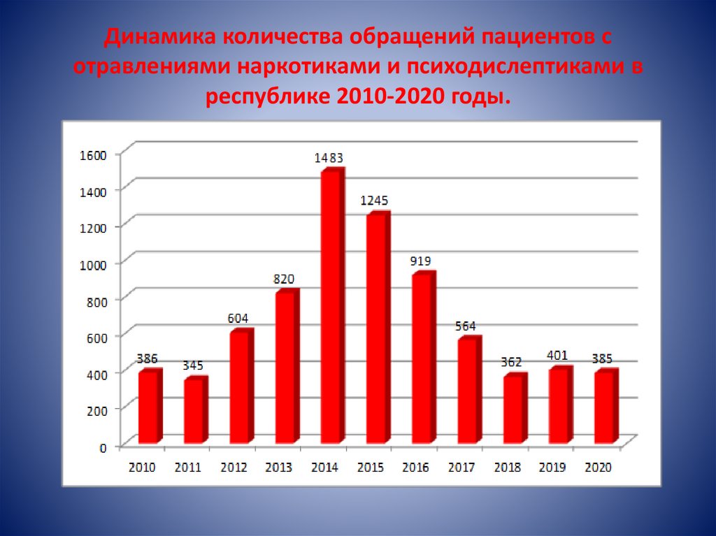 Динамика количества обращений пациентов сотравлениями наркотиками и психодислептиками в