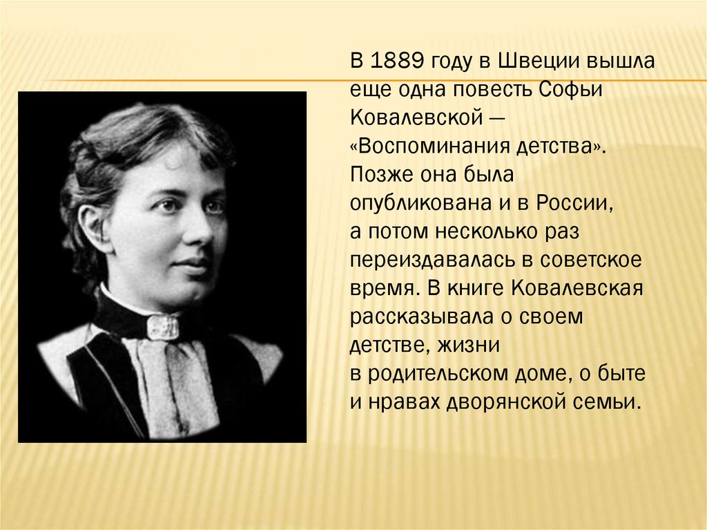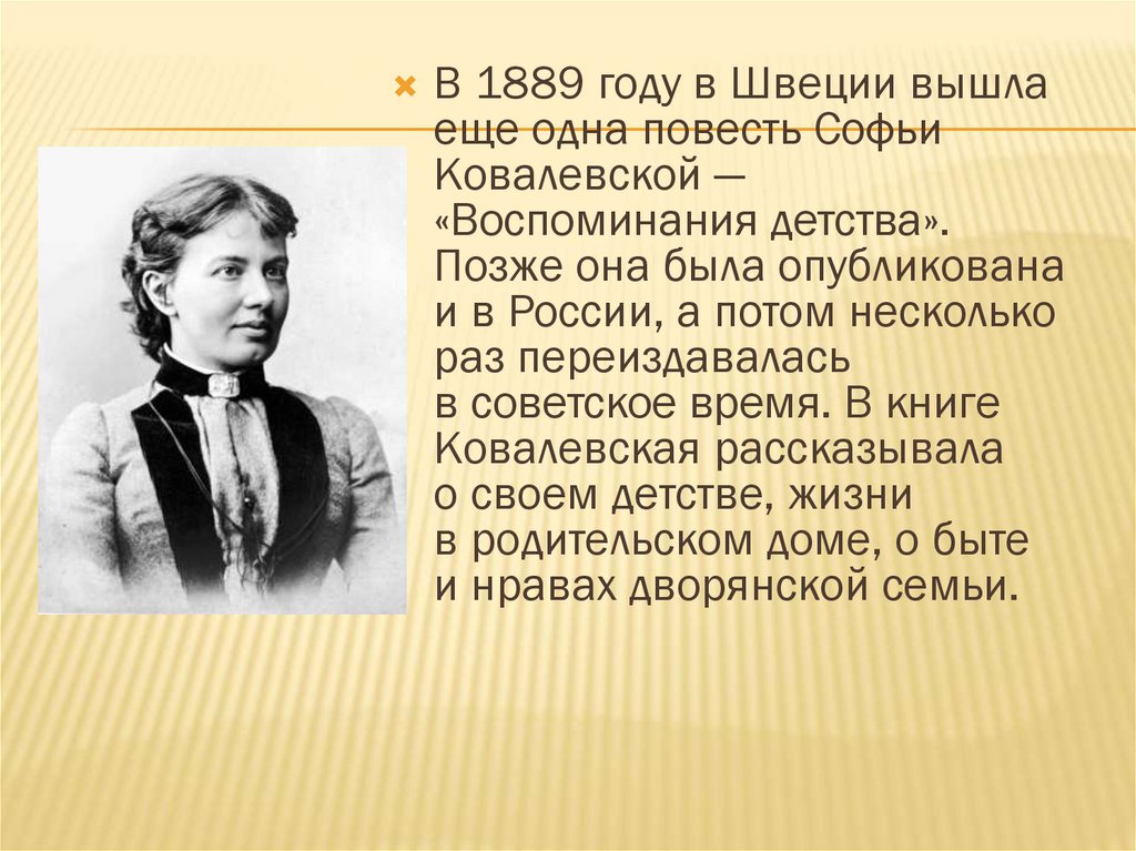 В 1889 году в Швеции вышлаеще одна повесть Софьи