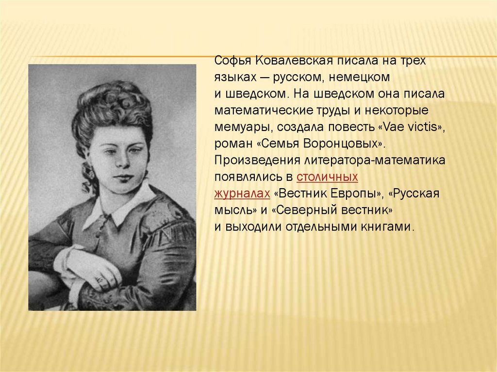 Софья Ковалевская писала на трехязыках ― русском, немецком