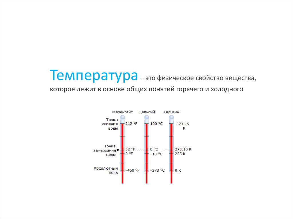 Температура – это физическое свойство вещества,которое лежит в основе общих понятий горячего и холодного