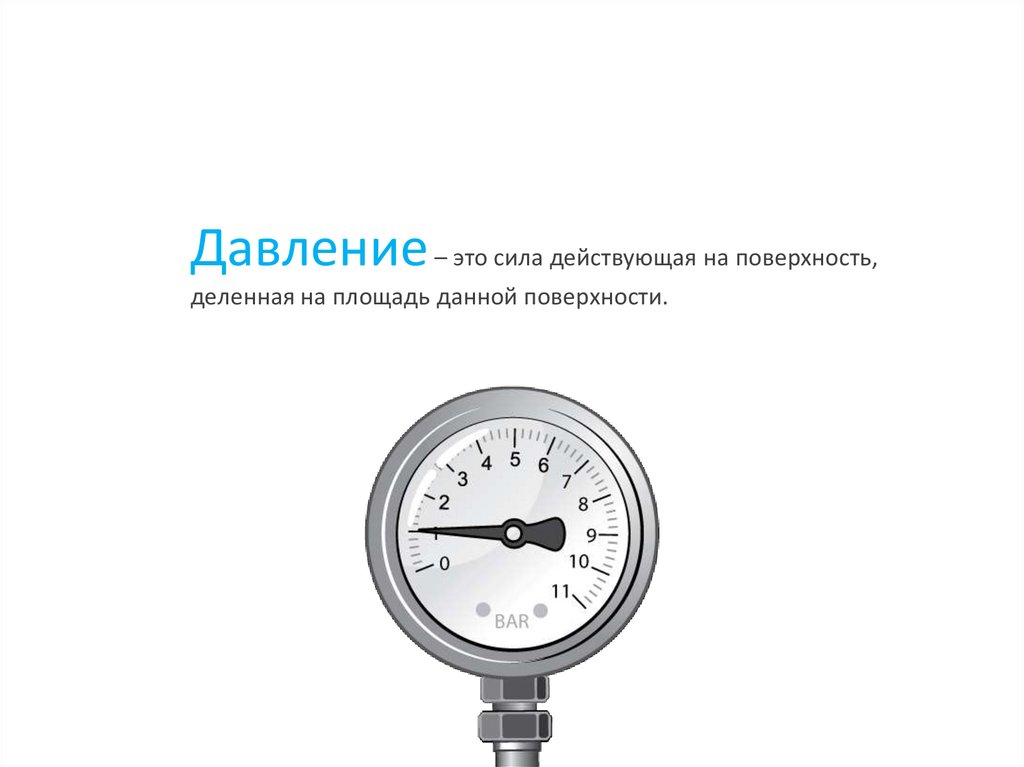 Давление – это сила действующая на поверхность,деленная на площадь данной поверхности.