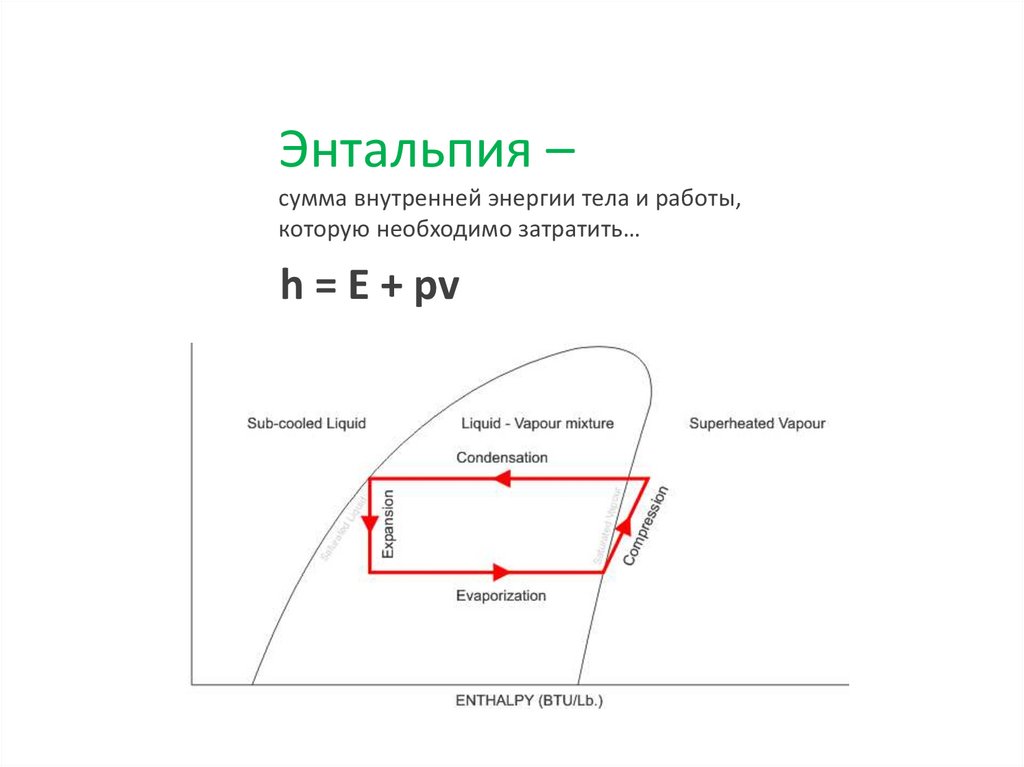 Энтальпия –сумма внутренней энергии тела и работы,
