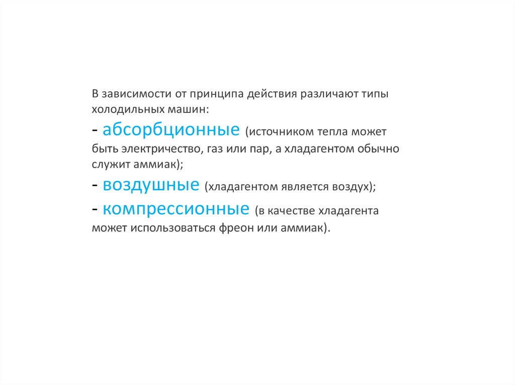 В зависимости от принципа действия различают типыхолодильных машин: