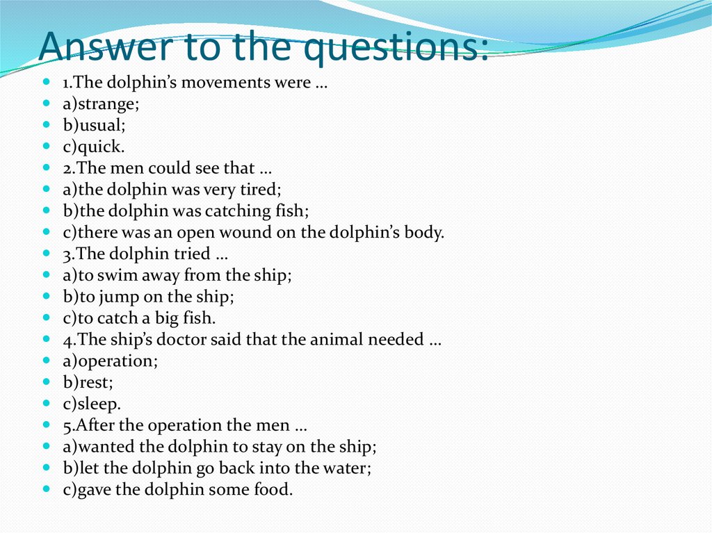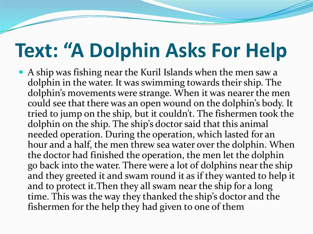 Text: “A Dolphin Asks For HelpA ship was fishing near the Kuril Islands when the men saw a