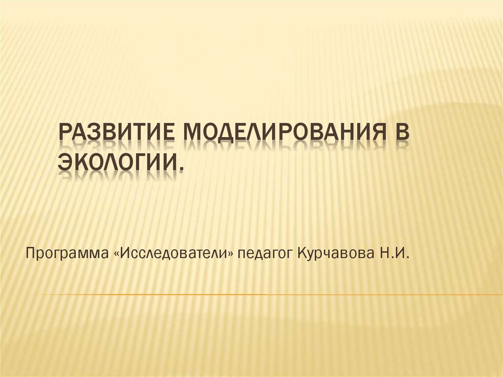 РАЗВИТИЕ МОДЕЛИРОВАНИЯ ВЭКОЛОГИИ.
