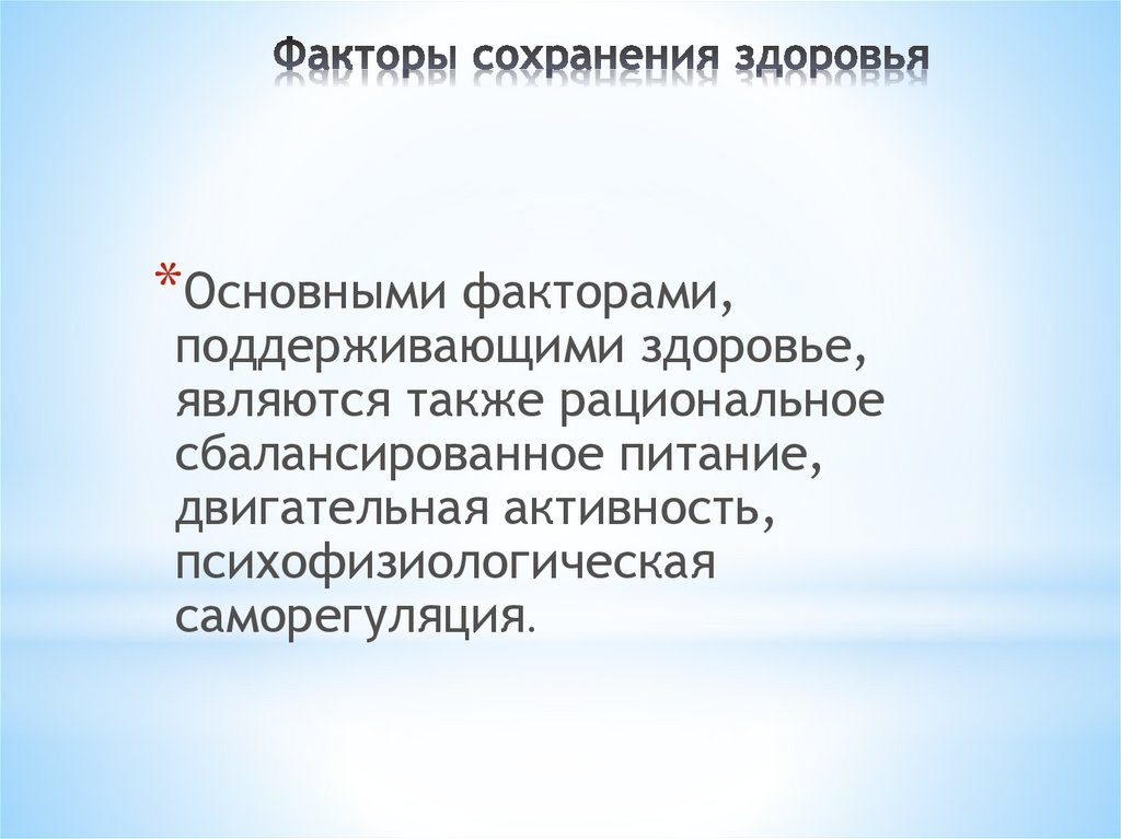 *Основными факторами,поддерживающими здоровье,