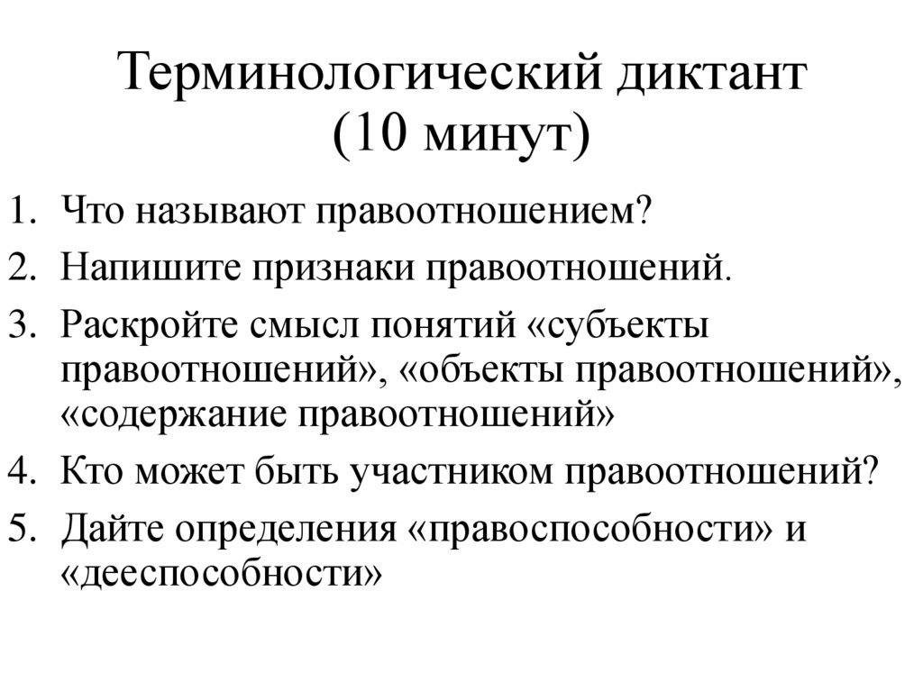 правоотношений», «объекты правоотношений»,