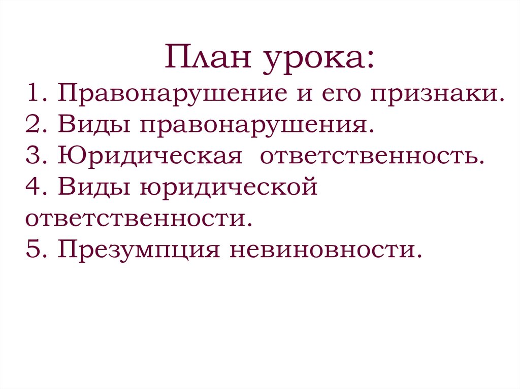 План урока:1. Правонарушение и его признаки.