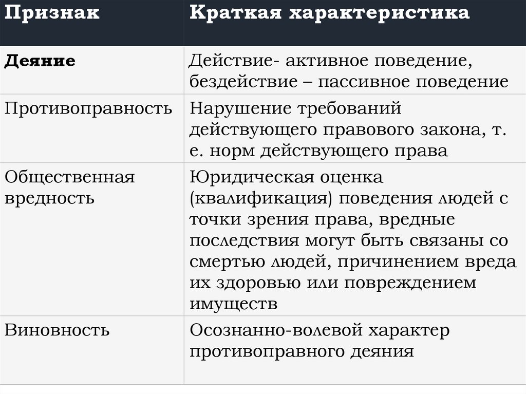 Признаки правонарушения