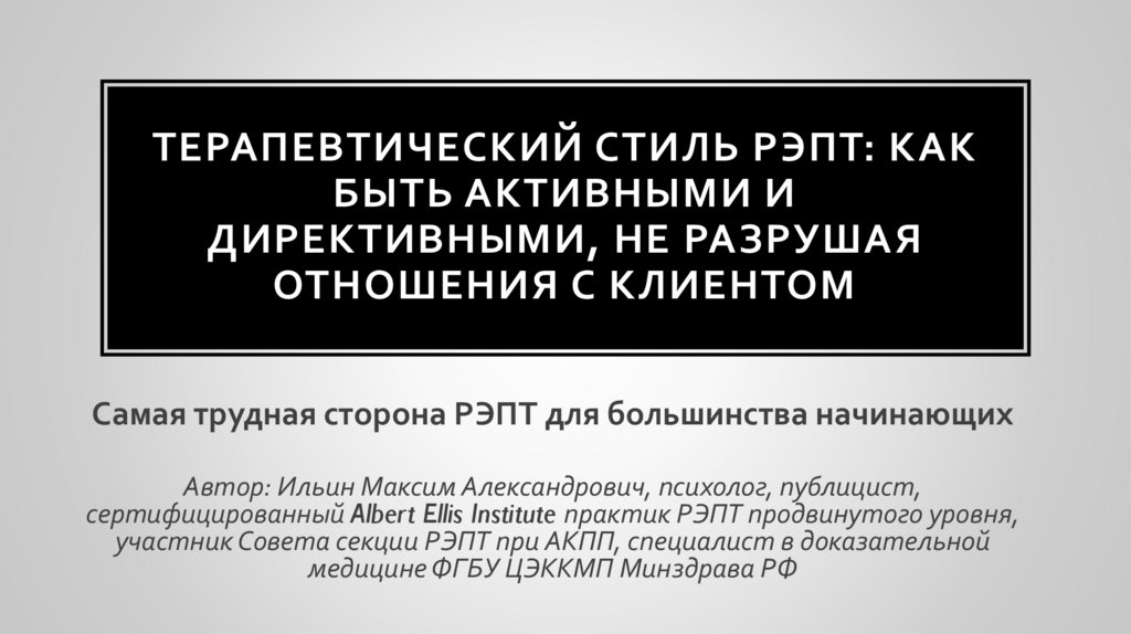 Терапевтический стиль РЭПТ: как быть активными и директивными, не разрушая отношения с клиентом