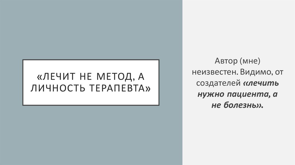 «ЛЕЧИТ НЕ МЕТОД, АЛИЧНОСТЬ ТЕРАПЕВТА»