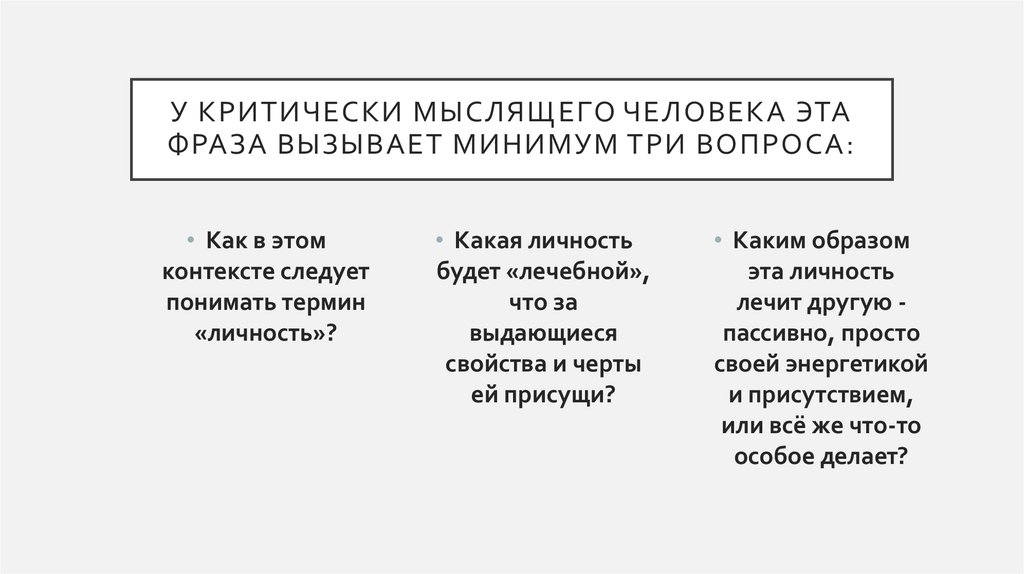 У КРИТИЧЕСКИ МЫСЛЯЩЕГО ЧЕЛОВЕКА ЭТАФРАЗА ВЫЗЫВАЕТ МИНИМУМ ТРИ ВОПРОСА: